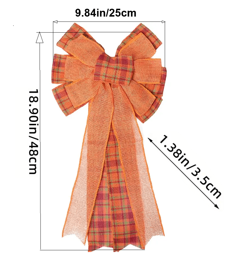 Bow Orange Buffalo Plaid Check Wreath Bow Swag Bow Thanksgiving Wreath Pre-Tied Bow for Fall, Thanksgiving, Christmas, Home Indoor Outdoor Ornaments