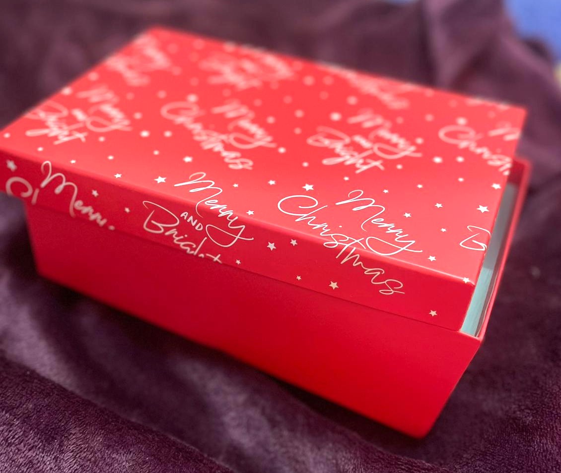 Add a touch of holiday magic to your gifts with this elegant red Christmas box. Featuring festive phrases like “Merry Christmas” and “Merry & Bright” in white cursive font, this sturdy box is perfect for packaging candles, jewelry, or treats. The lid fits snugly, and the interior offers ample space for creative presentation. Ideal for seasonal hampers, holiday gifting, or retail packaging.